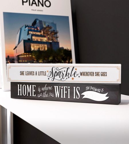 - Freestanding, stylish wooden blocks featuring heart-warming sentiment and feel-good phrases.